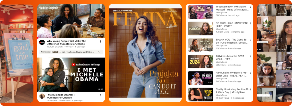 Core Channel: YouTube – Prajakta posts relatable lifestyle and comedy videos.