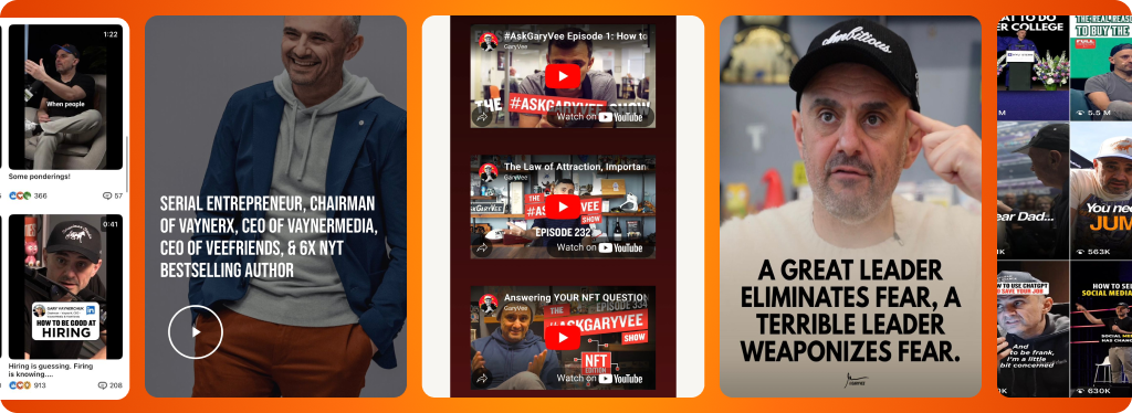 Core Channel: Instagram, YouTube – Gary uses Instagram and YouTube to deliver high-quality, value-packed content about marketing and entrepreneurship.