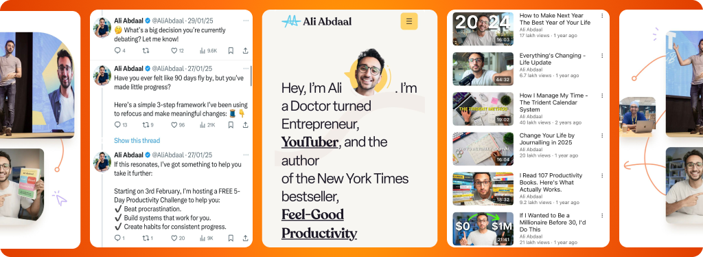 Core Channel: YouTube – Ali focuses on long-form content about productivity and learning.